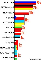 Симпатии 25 процентов из 500 опрошенных социологами минчан в возрасте от 18 лет и старше принадлежат России. Более половины среди них - мужчины (54 процента), а также люди в возрасте 40 лет и старше (71 процент). Таковы результаты опроса, проведенного социологами службы "Зеркало" агентства БелаПАН 28-30 марта текущего года. Жителям столицы был задан вопрос: "Какой из постсоветских и постсоциалистических стран Восточной Европы вы симпатизируете?".