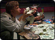 Главное, на чем концентрируется внимание героев фильма, - это деньги. Американские. Но зеленая бумажка не выступает в качестве идола. Она выступает в качестве скатерти-самобранки. Которая дарит ее обладателям еду, выпивку, уверенность в завтрашнем дне и… большой букет цветов для любимой девушки. Молодые авантюристы с удовольствием окунаются к криминальный мир. Внося сумятицу в ряды матерых мошенников уже тем, что позволяют себе чисто, без крови, ограбить компанию криминальных "авторитетов". Оригинален эпизод во время налета: один из авантюристов держит в левой руке пистолет, а в правой - мобильный телефон, по которому назначает свидание девушке. Дальше - больше. Любимая оказалась дочерью одного из ограбленных "авторитетов". Каковы последствия второй встречи молодого налетчика и его жертвы (отец попросил дочь пригласить любимого на ужин), а также при помощи чего бесшабашная троица авантюристов приобрела способность к телепатии, и как собралась заполучить миллион долларов у родоначальников "зеленых", вы узнаете, посмотрев фильм.