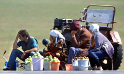 Вообще-то Мария Николаевна торгует астраханскими арбузами. Продавать свои яблоки заставила беда. Вчера один гаишник разбил ей почти все арбузы. Хозяину надо вернуть 50 тысяч. Поэтому и приторговывает своими яблоками. За день зарабатывает около семи тысяч. Сертификат качества и разрешение на торговлю у нее есть, но даже с такими документами торговать при дороге нельзя. А в деревне особо не наторгуешь. Не каждый купит килограмм арбуза за тысячу рублей, если у себя в огороде все ломится от фруктов.