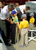 В производстве одежды и обуви для школьников сезона 2003-го года приняли участие 12 швейных, 4 трикотажных и 11 обувных предприятий республики. Среди них такие предприятия, как “Баравчанка” (Барановичи), “Славянка” (Бобруйск), Новогрудская и Жлобинская швейные фабрики, Дзержинская швейная фабрика “Элиз”, Брестская швейная фирма “Надзея”, “Полинка” (Солигорск), трикотажные предприятия “Свитанак”, “Полесье”, “Бобруйсктрикотаж”, Гродненская обувная фабрика, “Обувьмогилев”, Бобруйская обувная фабрика, “Сивельга”, “Белкельме”, “Оттика”, “Чевляр”, “Марко” и др. По данным на 11 августа, задание по поставке швейных изделий для школьников выполнено в целом на 64,1%, в том числе по поставке одежды для мальчиков - 65,7%, для девочек - 56,7%, по трикотажным изделиям - на 66,1%. Обувными предприятиями концерна “Беллегпром” отгружено на рынок республики 86,3 тысячи пар обуви для младшего и старшего школьного возраста (по данным на начало августа).