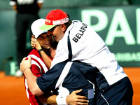 Итак, первыми вступили в борьбу лидер нашей команды Максим Мирный и второй номер сборной Германии Томас Беренд, заменивший значившегося изначально вторым Николаса Кифера. Немецкие тренеры чуть было не угадали с заменой. Беренд, воспользовавшись тем, что "медленное" грунтовое покрытие не позволяет Мирному использовать свой главный козырь - мощнейшую подачу - спокойно выиграл первые два сета - 7:5, 6:2. В третьем, который должен был стать последним, немец лидировал - 5:4 на своей подаче. И тут началось то, что в теннисе бывает редко, но неизменно вносит в сюжет поединка фантастические мотивы. Хозяин корта, видимо, испугался собственной прыти и начал стремительно терять инициативу, чем более опытный оппонент незамедлительно воспользовался. Мирный выцарапал третий сет - 8:6 на тай-брэке, а затем с той же легкостью, которая в первой половине матча была присуща сопернику, взял еще две партии - 6:2, 6:4. Отметим, что Мирный лишь второй раз в карьере выиграл встречу, уступив в двух первых сетах.