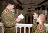Мы не ставим себе задач давать какие-либо оценки подобному способу воспитания и образования. Просто когда видишь немного смущенный и серьезный взгляд этих необычных в своей форме мальчишек, невольно вспоминаешь гимназистов и давно забытый дворянский институт офицерства. Что-то неуловимое есть в этих открытых чистых лицах, то тут, то там мелькающих в пестрой толпе молодежи, привлекая внимание своей непохожестью. “Вы - лицо училища”, - каждый раз слышат они перед увольнением и, несмотря на свой юный возраст, чувствуют всю ответственность этой мало кому понятной фразы. И то, что кажется кому-то смешным, для этих ребят наполнено своим смыслом и гордостью. Кстати, многие из них сироты или имеют неполные семьи и если отличаются от своих сверстников строгим форменным пальто и погонами на плечах, то только потому, что решили защищать отечество не по обязательному призыву, а по собственному желанию. И не в пример многим, знают, что нельзя приглашать на танцах девушку, если рядом с ней стоящая тебе только что отказала. Странные мальчики – маленькие мужчины с детским лицом.
